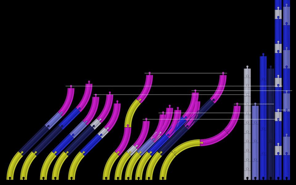 I used this system to build a map of track-length equivalences. Some were surprising to me, when certain combinations lined up perfectly, especially with the 45-degree combinations