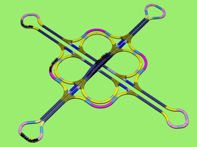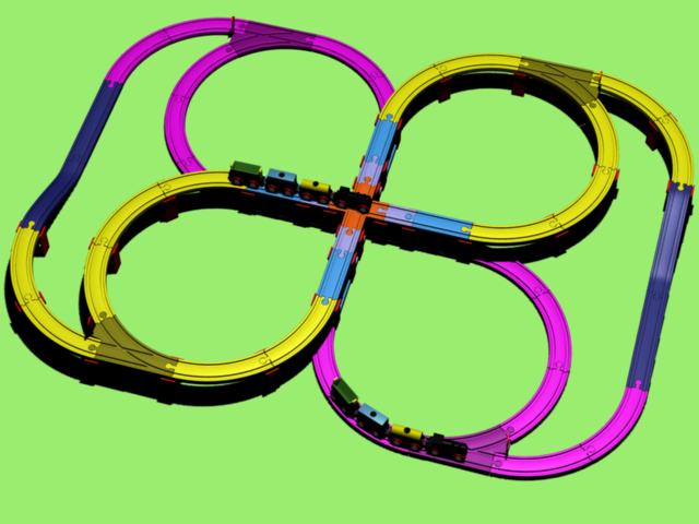 For now, I’ve color-coded the different track pieces to make distinguishing the layouts easier.