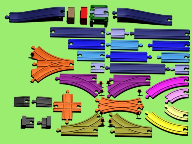 After playing wooden trains with my nephew at Thanksgiving, I started building a wooden train set in Maya. One of the hardest parts of wooden trains is understanding how they fit together. With most wooden train sets there is a lot of wiggle room where you can force certain tracks to fit where they really ought not to.